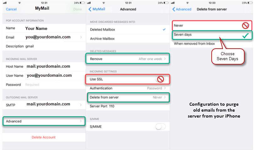 Step 7. Prevent Server Mailbox from filling up: