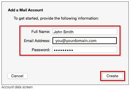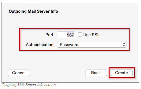 Step 7. Configure the Outgoing Mail Server as follows.  Click the Create button when finished.